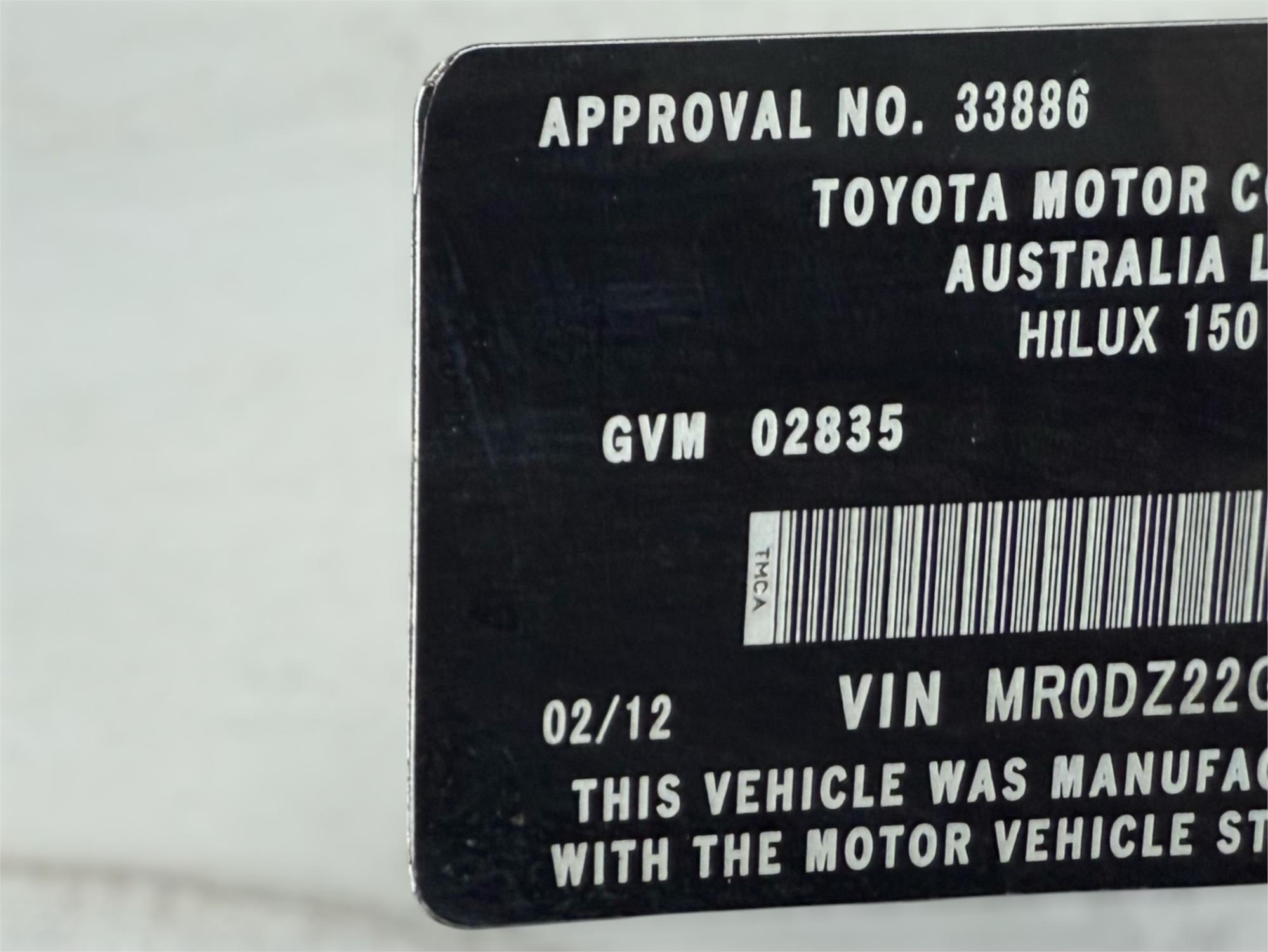 - Short descriptionHILUX WORKMATE (4x4) KUN26R MY12 DIESEL TURBO F/INJ 3.0L 5 SP MANUAL